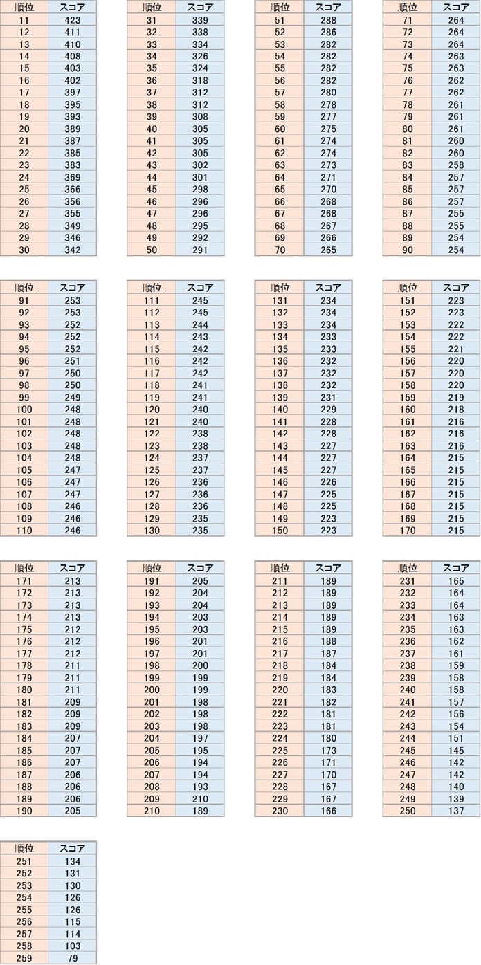 ●令和7年度フリータイム式ボウリング大会成績(1位~10位まで)